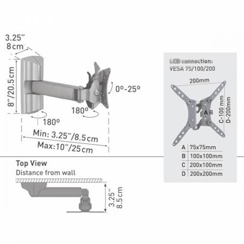 Вынос: от 8.5 до 25 см